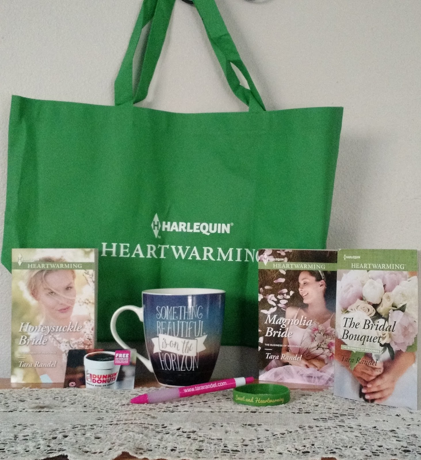 – US PRIZE PACK: Signed copies of the first three books in The Business of Weddings series by Tara Randel, a $25 gift card for Dunkin’ Donuts, a coffee mug with an inspirational message: “Something beautiful is on the horizon,” and a Harlequin Heartwarming tote bag. (US only)