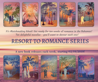 The Resort to Romance series is a multi-author series of ten sweet romance novellas set on a fictional island in the Bahamas. These are light-hearted, clean romances destined to warm you up through the final months of winter. A new novella releases each week—starting today!