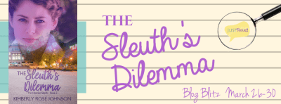 Hello, reader friends! Join me in welcoming author friend Kimberly Rose Johnson for a JustRead blog blitz, character interview, and giveaway celebrating The Sleuth’s Dilemma!